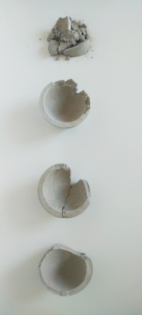 Each of the concrete plate is the metaphor of the generation. Every crack is the fate of this generation. Their fates are different but equally hard. Only small part of the generation history is conveyed to the next one. If the the dishes were broken, some parts would be lost forever.