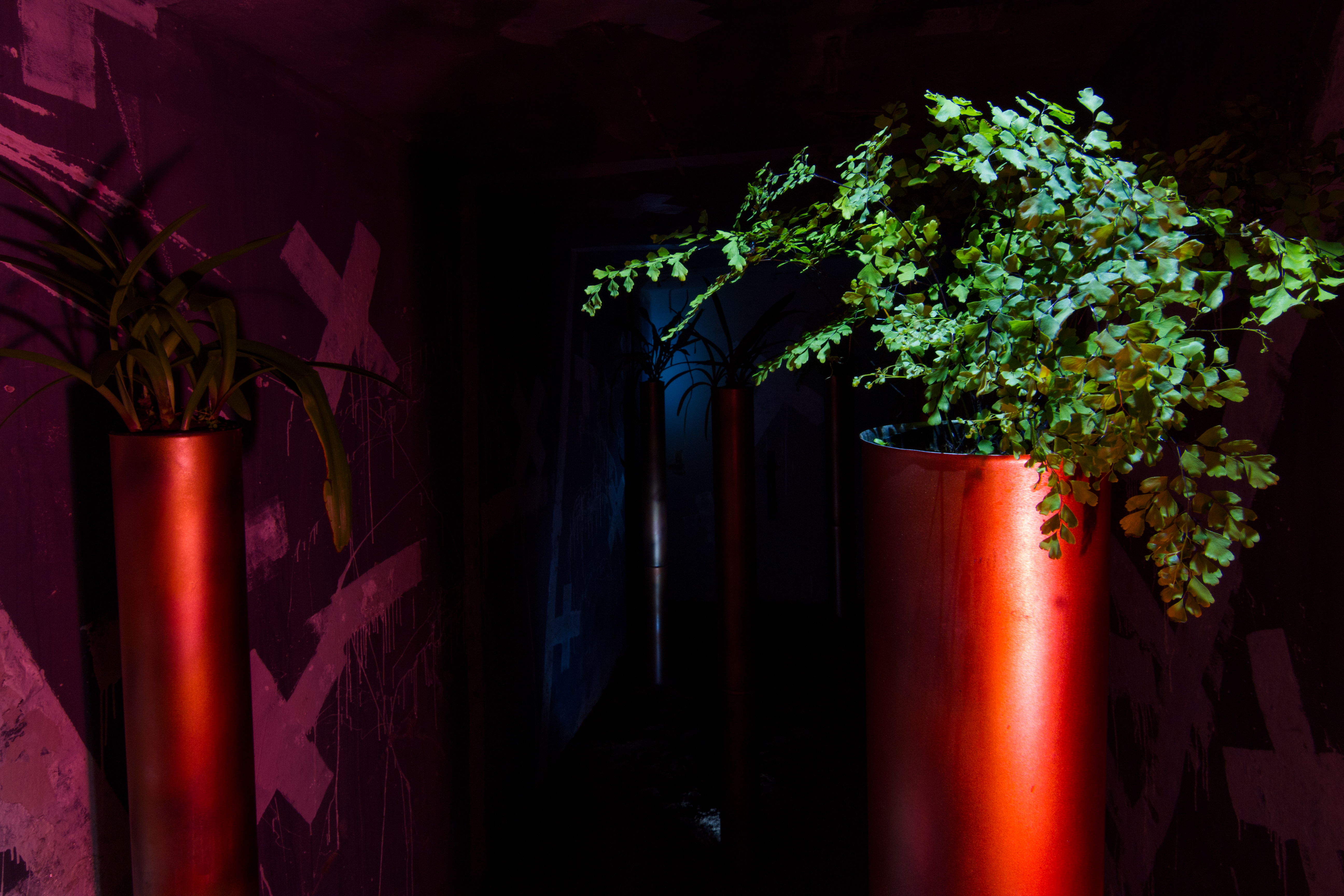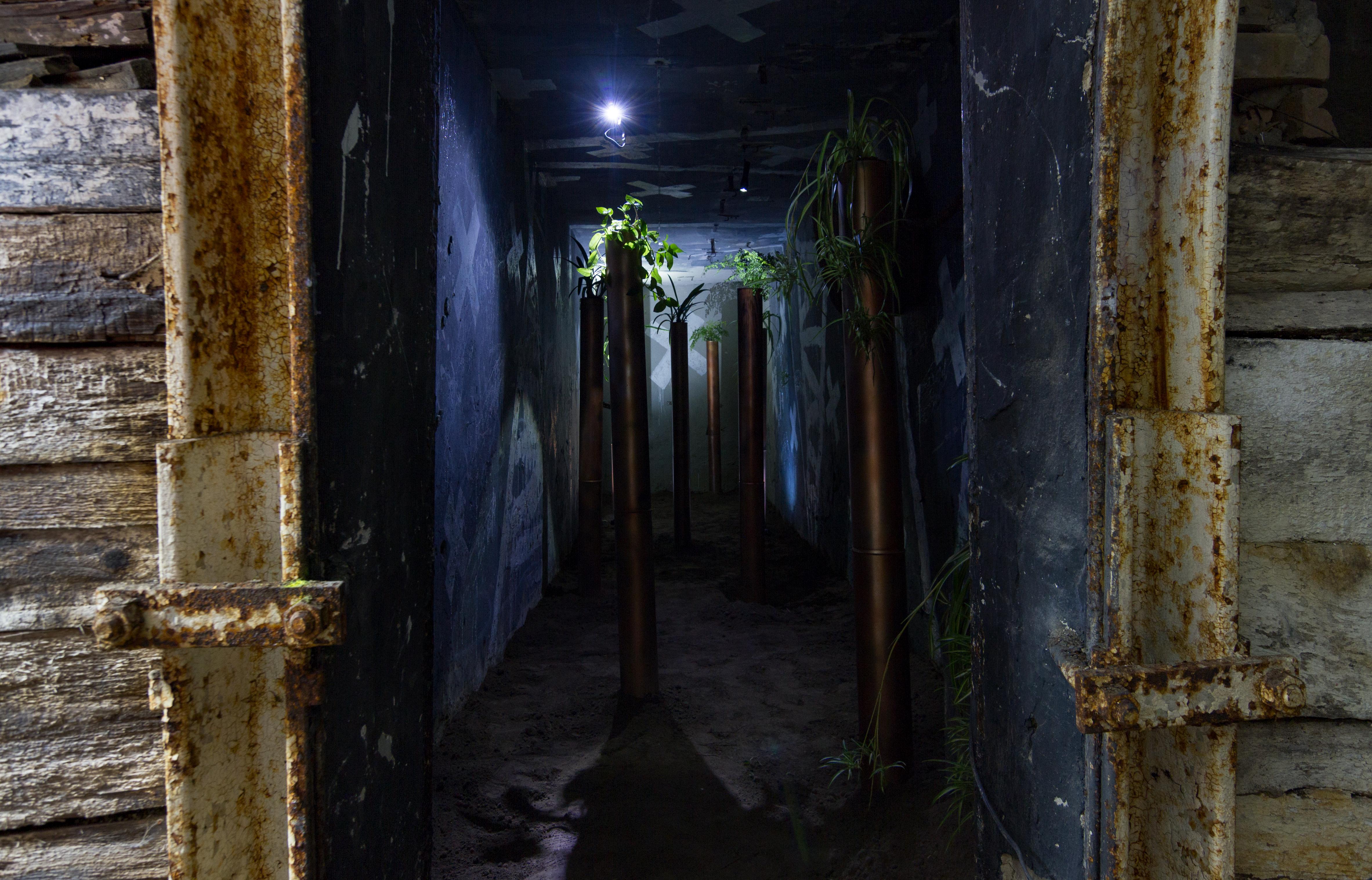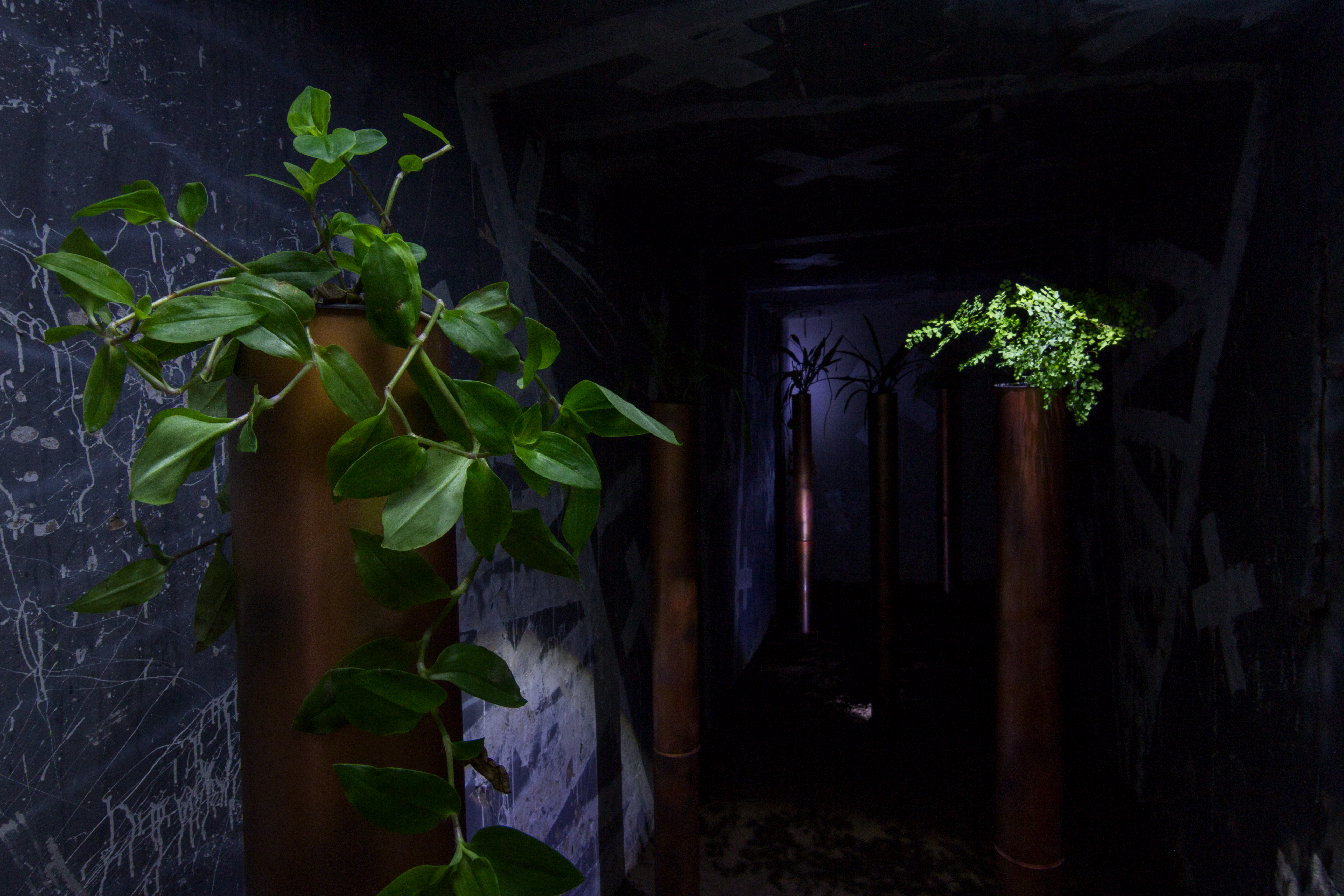 8 metal tubes, plants. Dimension variable